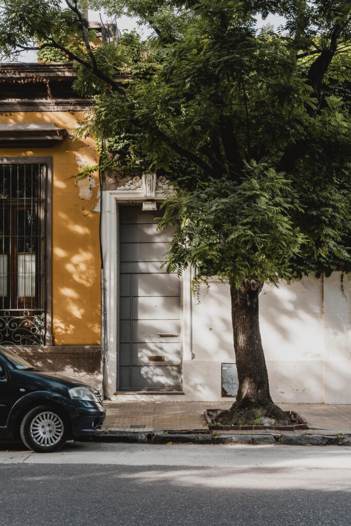 De la banqueta hacia adentro.